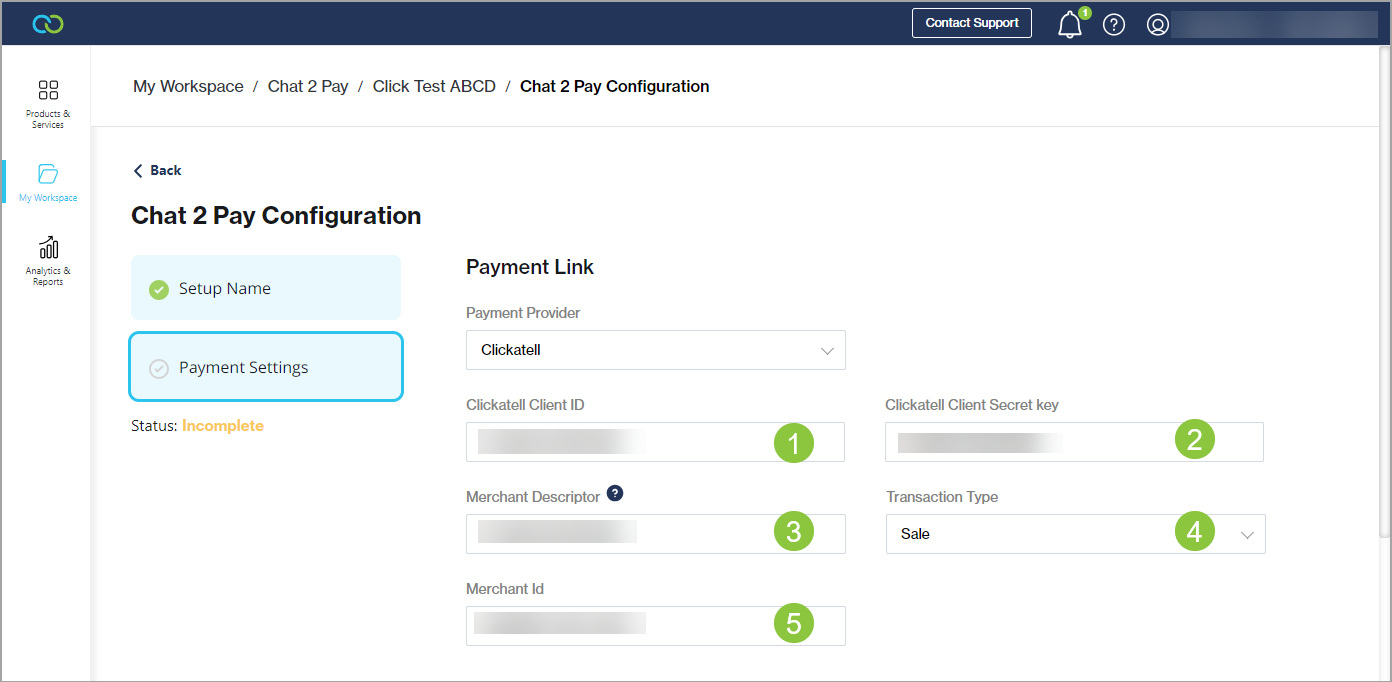 Merchant ID: The Merchant ID (MID) configured on your payment provider account that you use to accept payments using the Chat 2 Pay service.