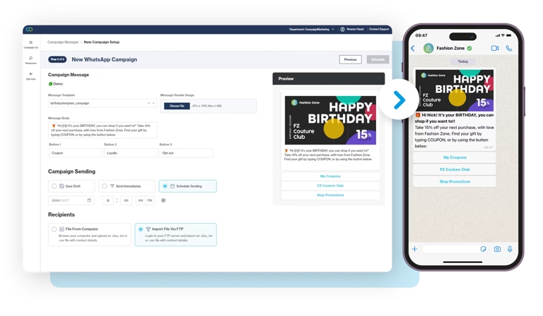With over three billion users worldwide and an average open rate of 98%, WhatsApp is a must-have channel in your conversational marketing mix. Clickatell's Broadcast Messenger for WhatsApp will quickly get you ramped up and running to start driving value from this channel.