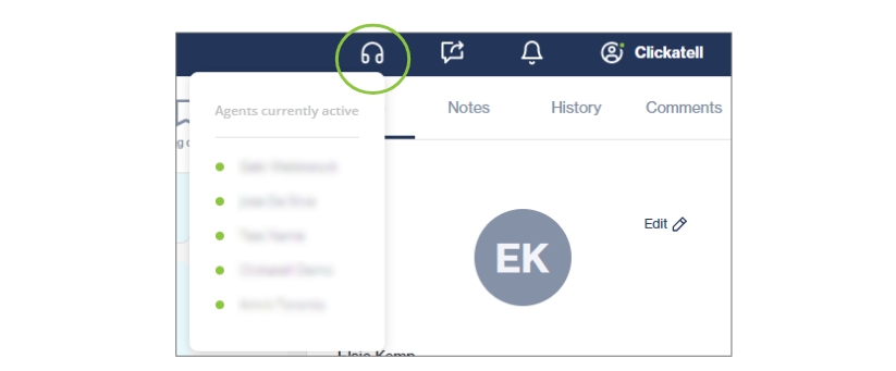 Hover over the headset icon in the top right corner of your screen. A list of all agents that are online is displayed.