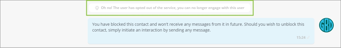 Visual indicator: Oh no! The user has opted out of the service, you can no longer engage with this user.