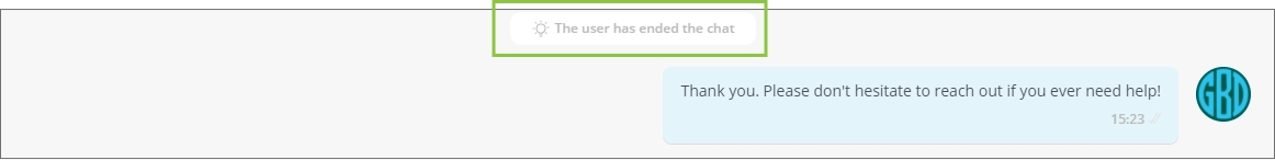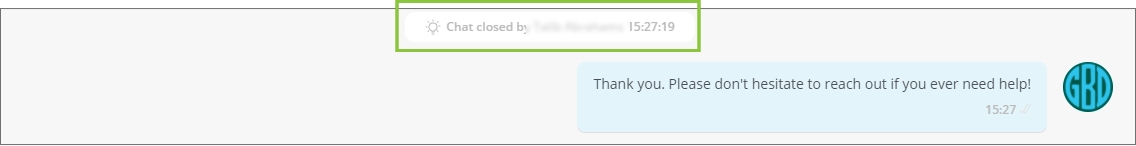 Visual indicator: Chat closed by [[AgentName]] [[timestamp]].