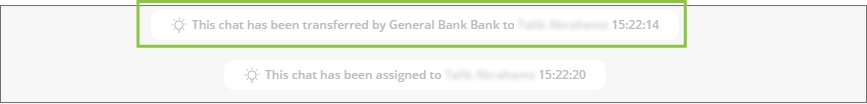 Visual indicator: This chat has been transferred by [[InitiatingAgentName]] to [[ReceivingAgentName]] [[timestamp]].