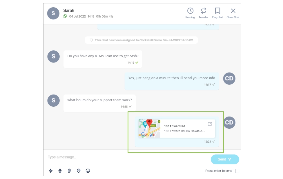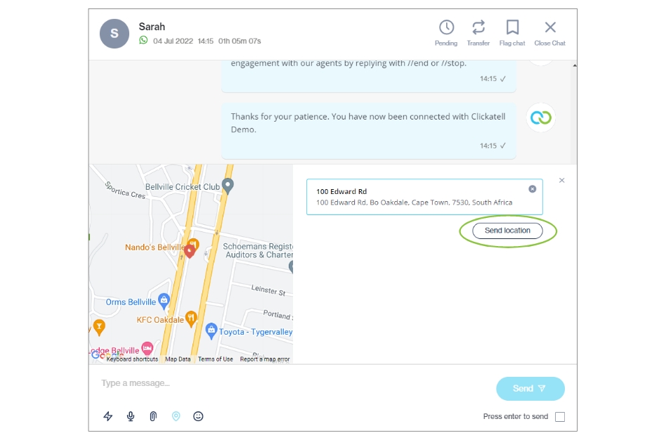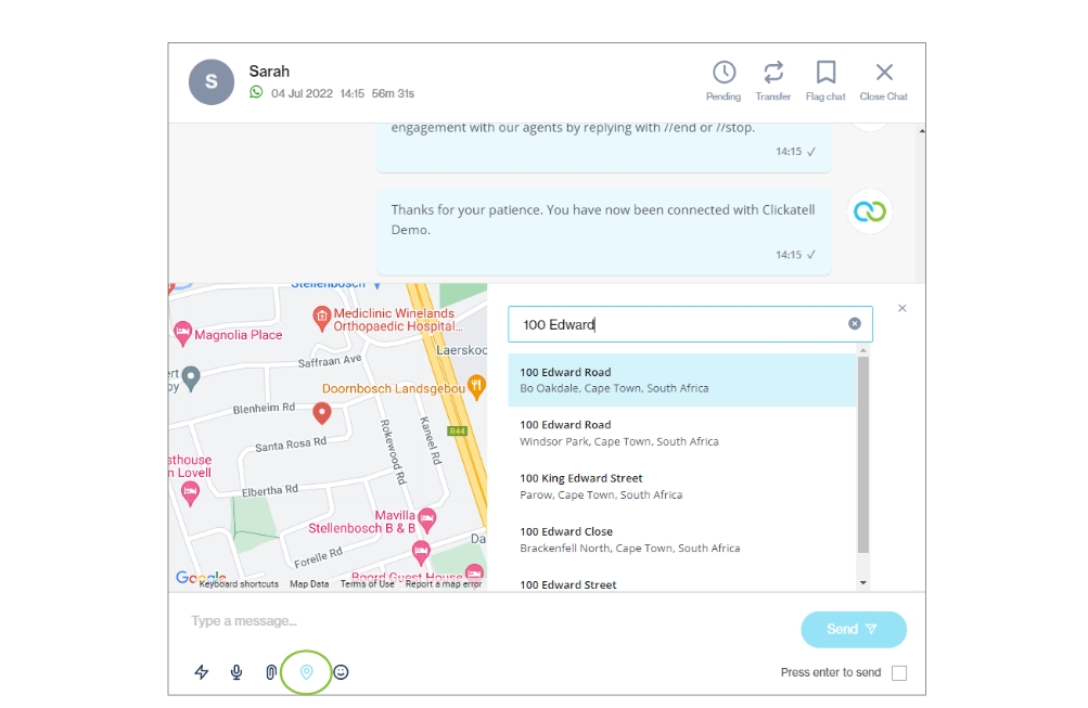 Enter the address you want to share with the customer and press the Enter key on your keyboard.