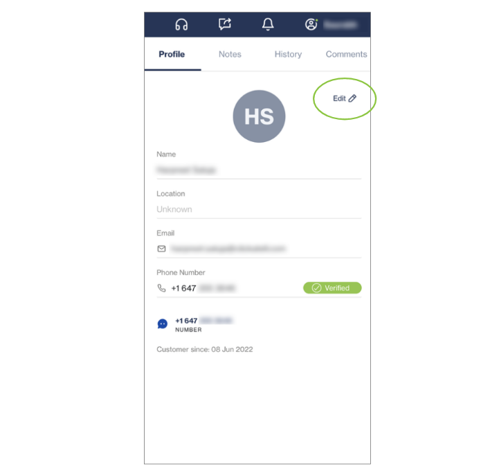 When a customer contacts you for the first time, you won't have any information about them except the number they contacted you from. As you gather more details about the customer, you can update their profile in Chat Desk.
