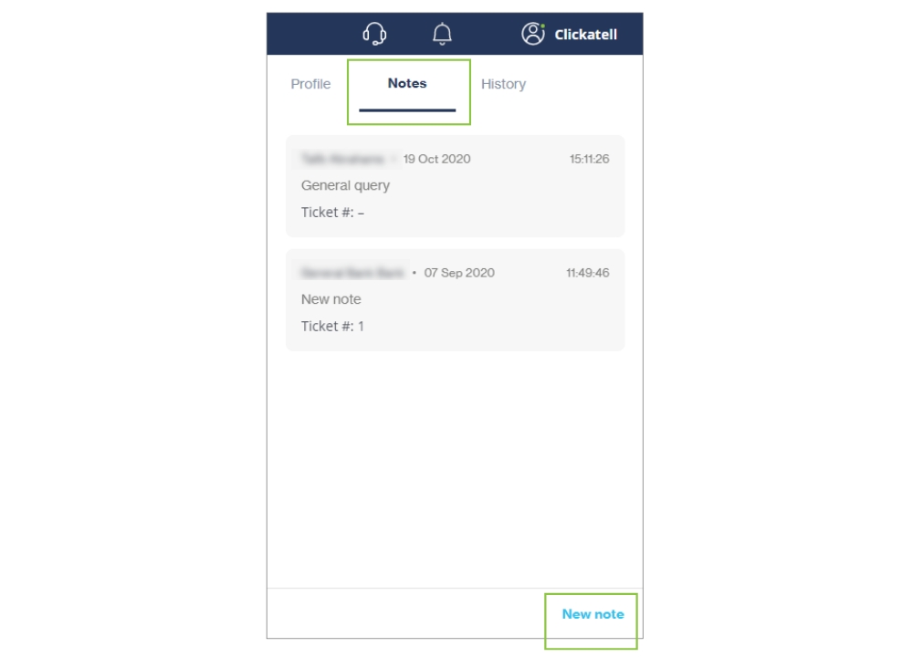 Agents can capture notes at any time during a conversation with a customer. Notes can also be captured for closed chats and tickets.