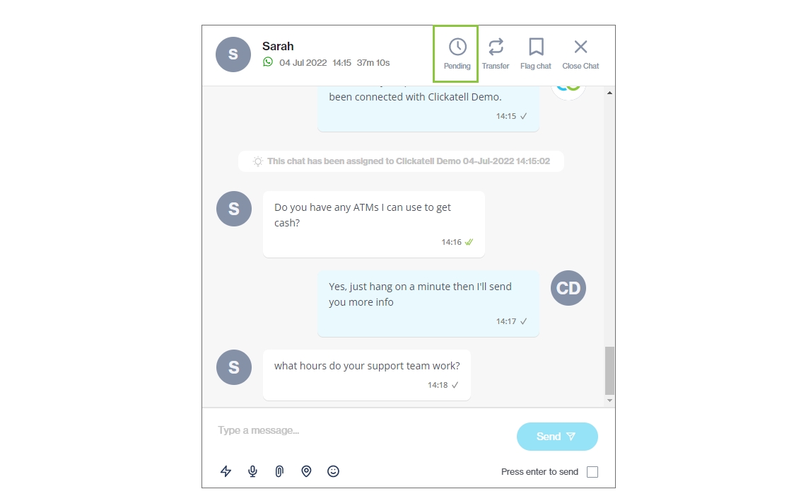The Pending Chats feature helps Chat Desk agents to manage their live chat queue more efficiently.