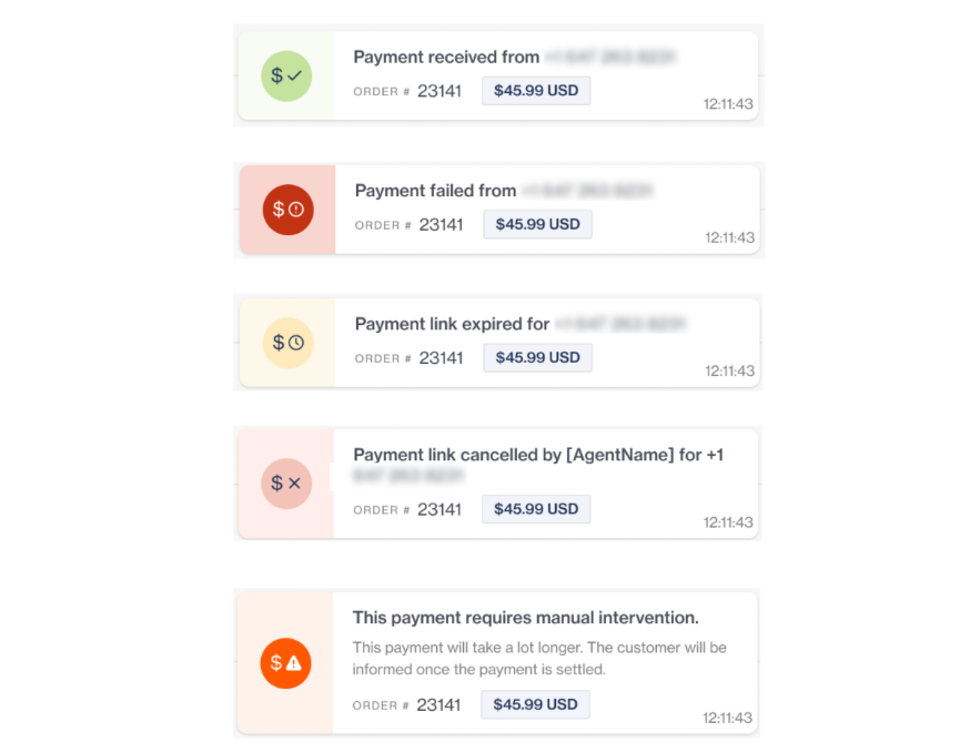 Once payment is received from the customer, the agent receives a payment confirmation message.