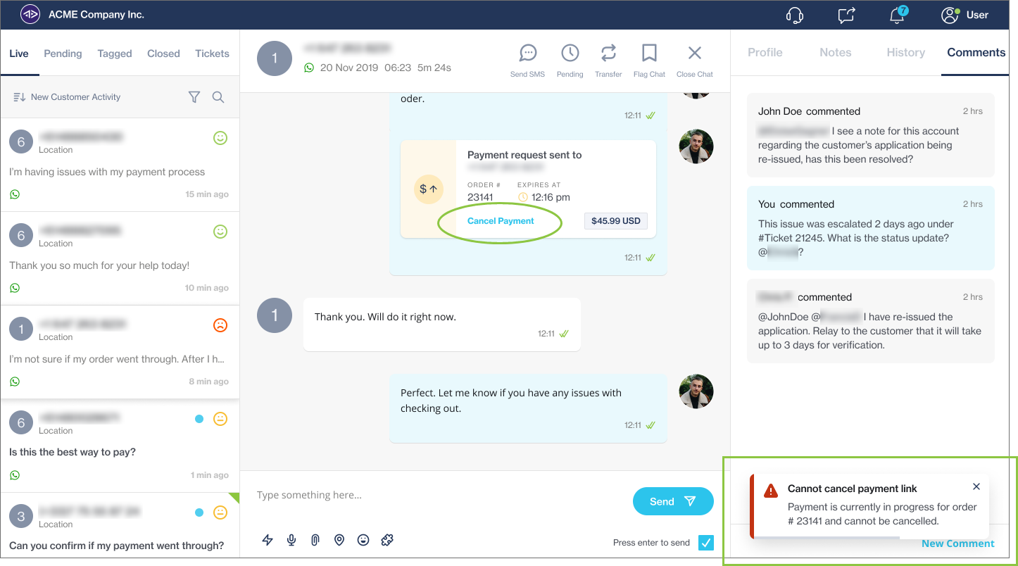As an agent, you can cancel a payment request by clicking Cancel Payment (shown below).