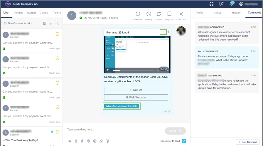 Message templates will form part of the chat history so that agents and supervisors can easily refer back to it.