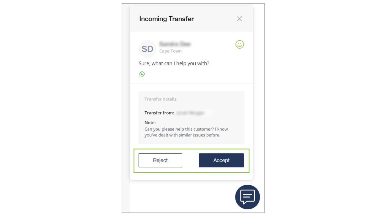 If the transferred chat isn't accepted within 20 minutes, it is transferred back to the original agent.