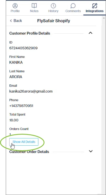 As an agent, you can view information about your customers as fetched from the 3rd party applications integrated with Clickatell (e.g., Salesforce, Zendesk Sell, Zendesk Support, Shopify) while engaging with them in Chat Desk.
