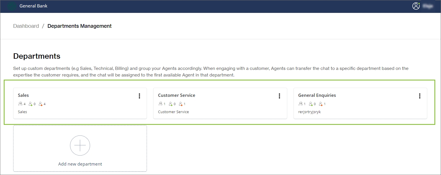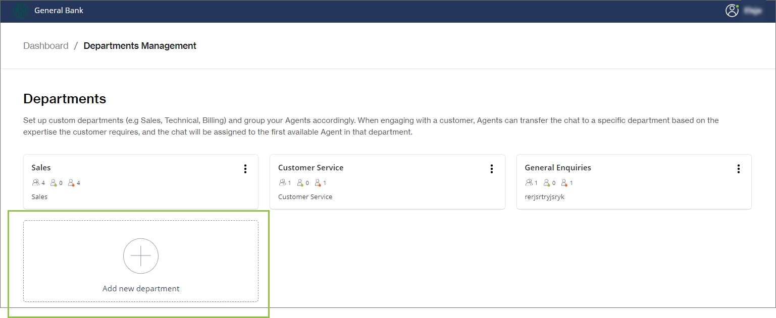 As a Supervisor, you can set up departments (e.g.Sales, Technical, Billing) and group your agents accordingly. When engaging with a customer, agents can transfer the chat to a specific department or agent within a department based on the expertise the customer requires.