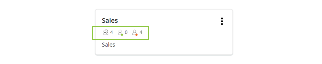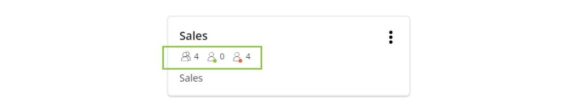 The icons in each block indicate the total number of agents in the department and how many agents are currently online (green dot) and offline (red dot). When hovering over each icon, the names of the agents are shown.