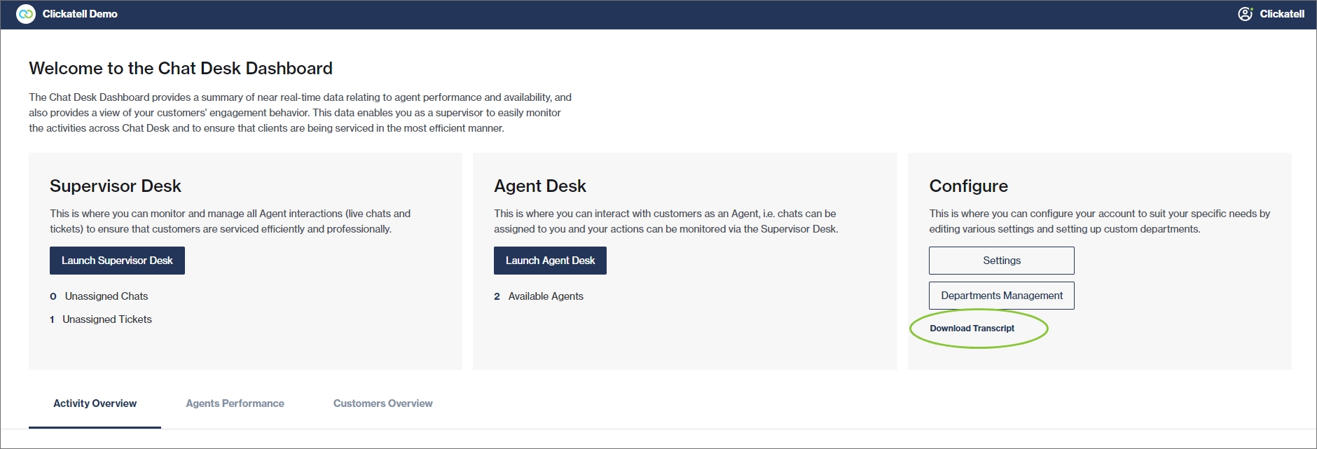 - Navigate to Dashboard -> Configure -> Download Transcript.
