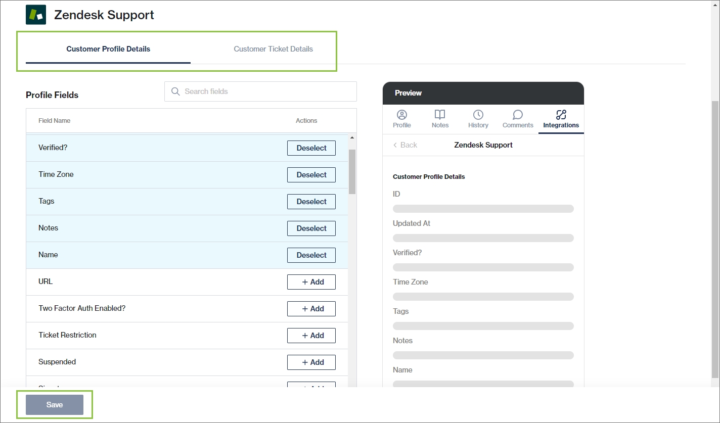 - This can be done for the Customer Profile Detail section as well as the Customer Ticket/Order/Case Detail section using the tabs at the top.