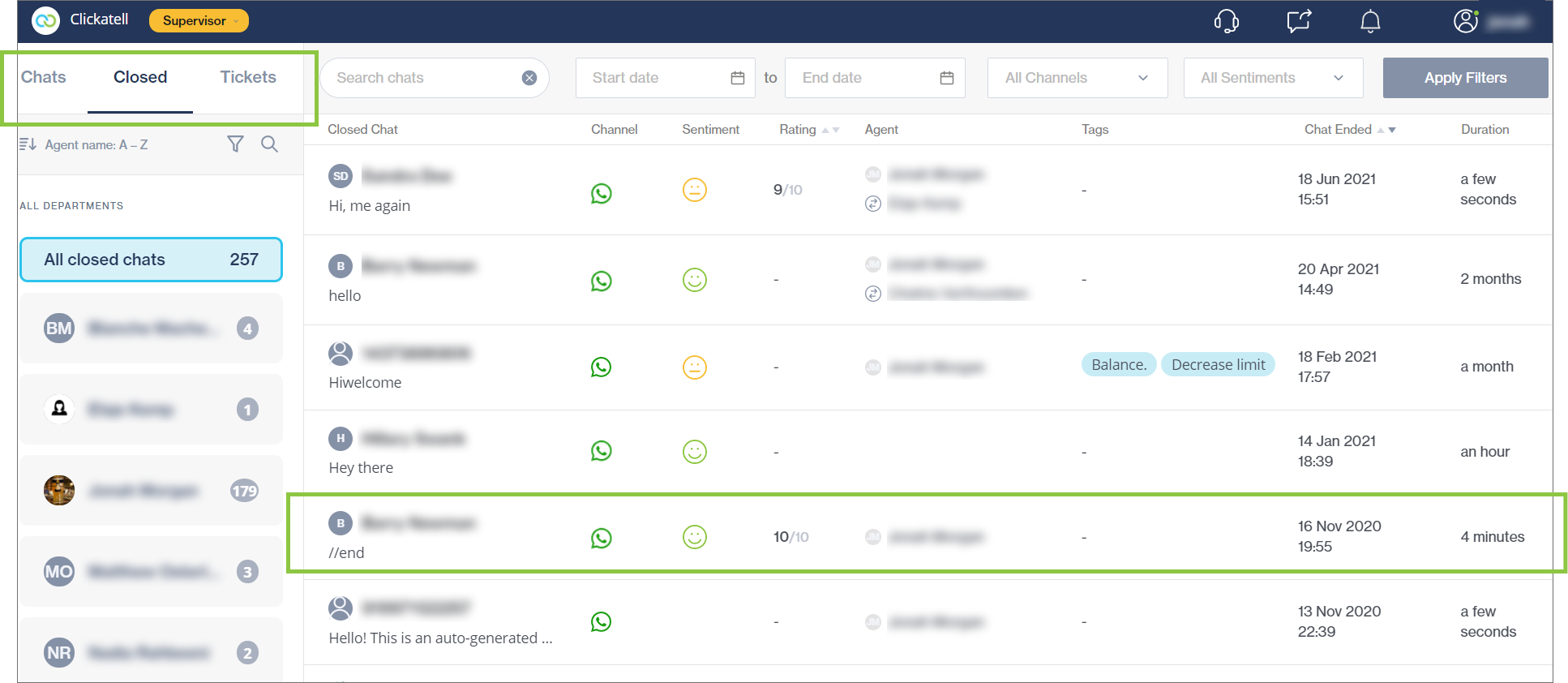 Select the closed chat and send a message via WhatsApp or SMS (depending on the channel the customer originally engaged on).