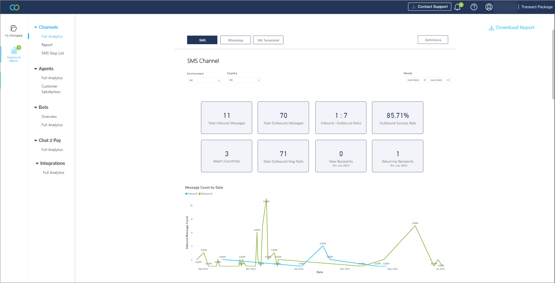 Get an overview of the activities across your channels and applications. View key metrics and graphical data.