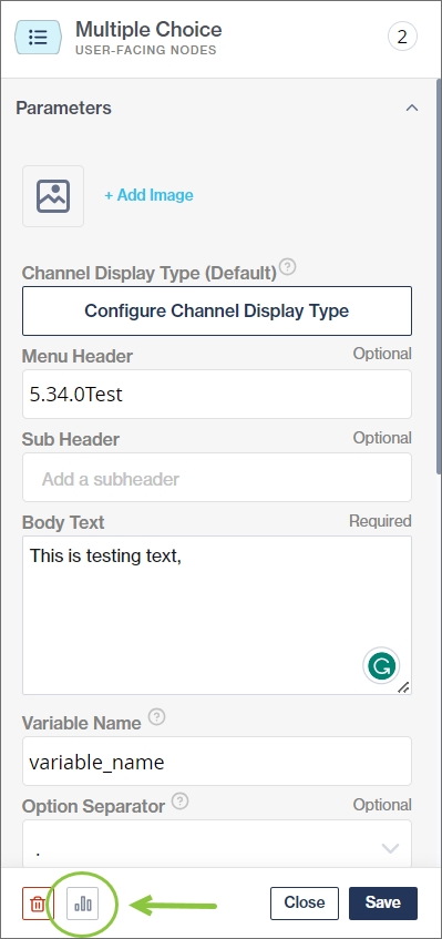 When configuring a node, click the Analytics button.
