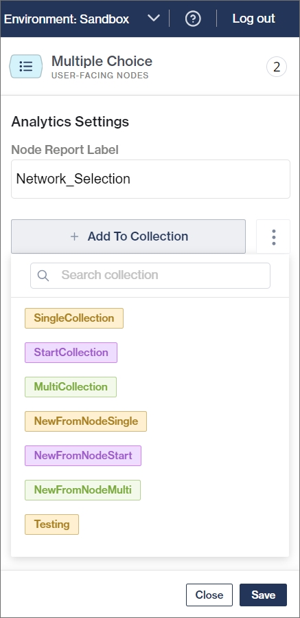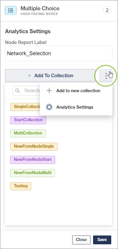 Collections are created in the Analytics Settings section or when adding a reporting label to a node.