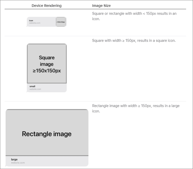 Optimizing your image for 240 x 240 pixels results in the best experience for your customers. The image binary size must be 200KB or smaller. How the image displays to your customers depends on the size of the image you add, as shown below.