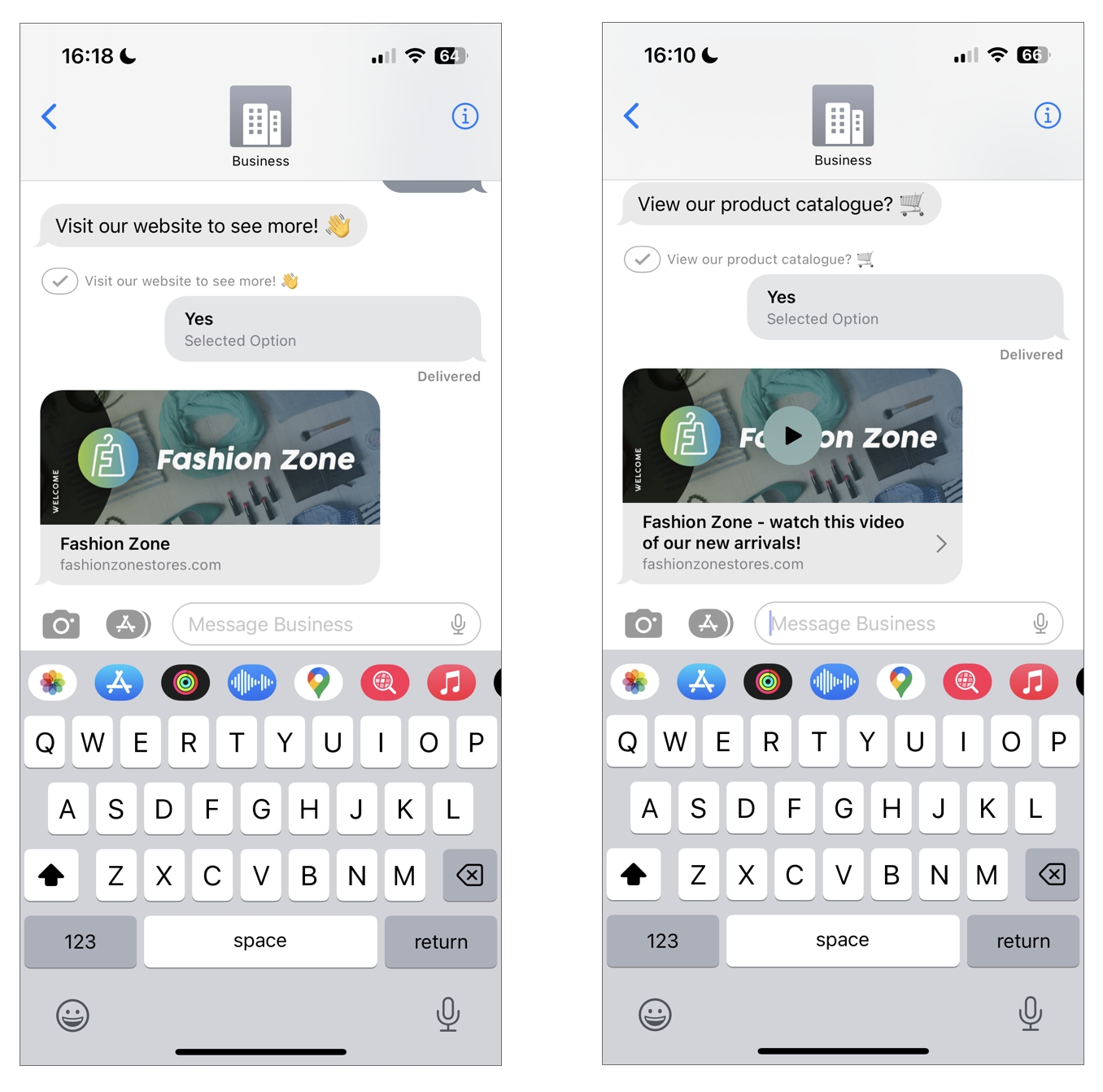 This node behaves slightly differently on WhatsApp and Apple Messages for Business (AMB).