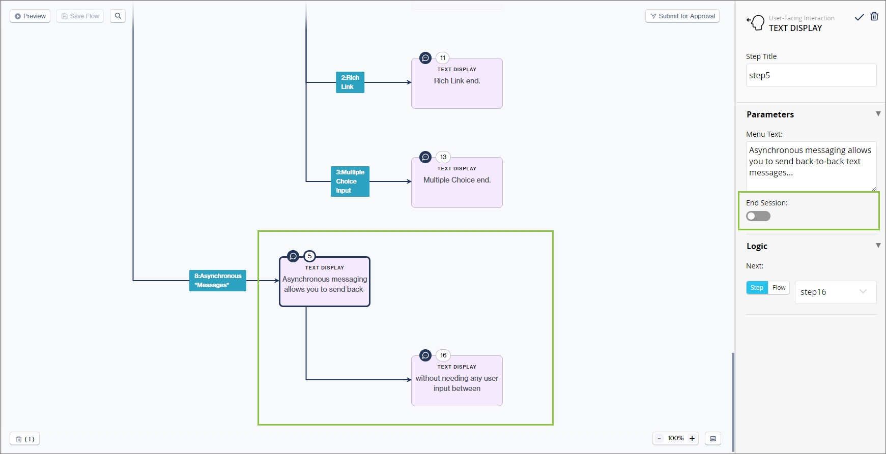 Use the End Session toggle to set whether the flow must end at this node, or whether more steps should follow after this node.