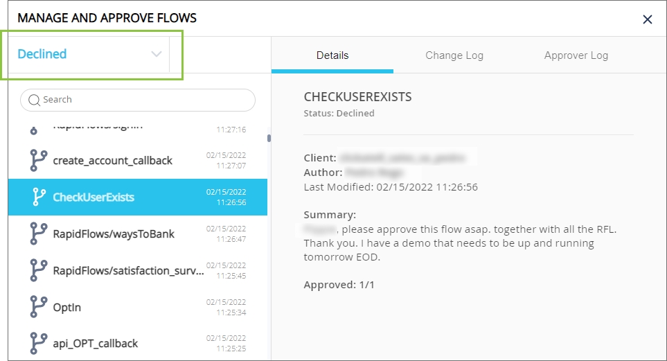 After making the necessary changes, the flow must be saved and resubmitted for approval following the same steps.