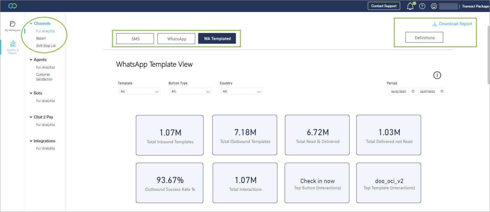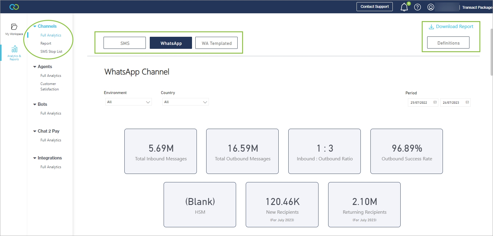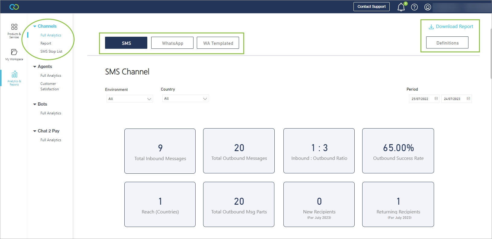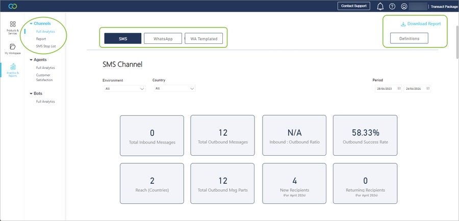 You get access to the following channel-specific reports in the Clickatell Portal: