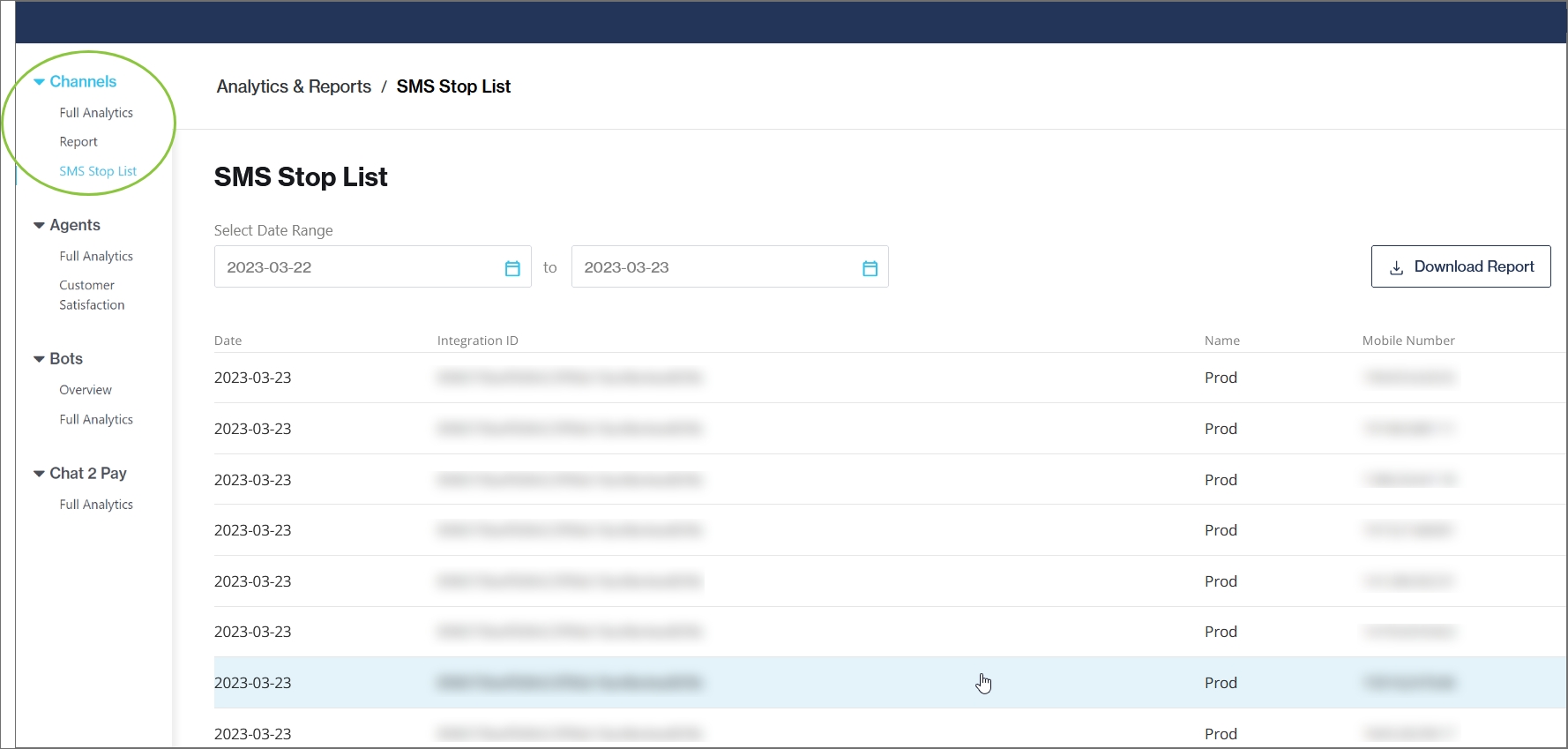 View and download (PDF) a list of the customers who opted out from your account's SMS channel for a specified date range.