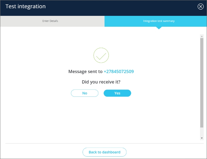 Click the ‘Create new integration’ button and complete the setup wizard. You will have to specify the messaging type (one-way or two-way) and delivery type (standard or time-critical), and edit message-specific settings to fit your needs. Once you’ve saved your integration, you will be presented with your API key.
