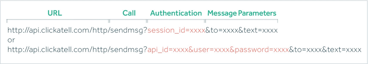 Add the details into this URL in a web browser https://api.clickatell.com/http/sendmsg?user=xxxxx&password=xxxxx&api_id=xxxxx&to=xxxxx&text=xxxxx and paste it into the URL bar of your browser to send a message.