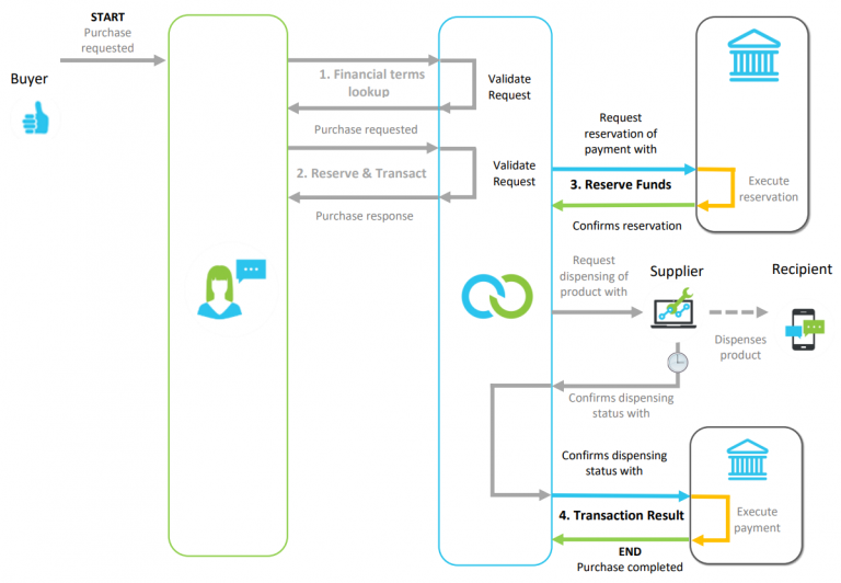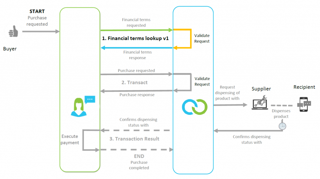However, if the funds were successfully reserved, Clickatell continues with the purchase and facilitates the dispensing of the product from its supplier (for instance a mobile network operator, a municipality, or a lottery ticket dispenser).