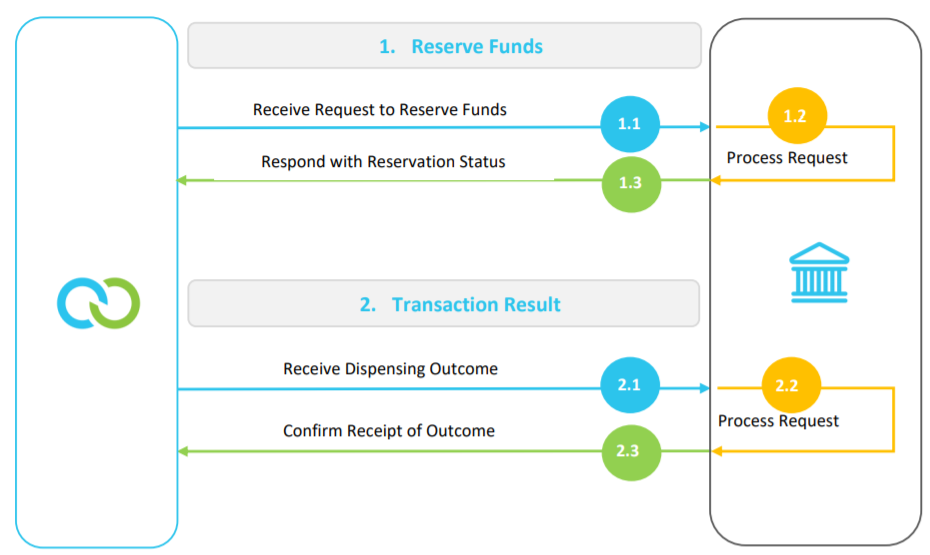 In the case of a successful dispensing outcome, the bank will finalize the fund reservation by debiting the buyer’s account.