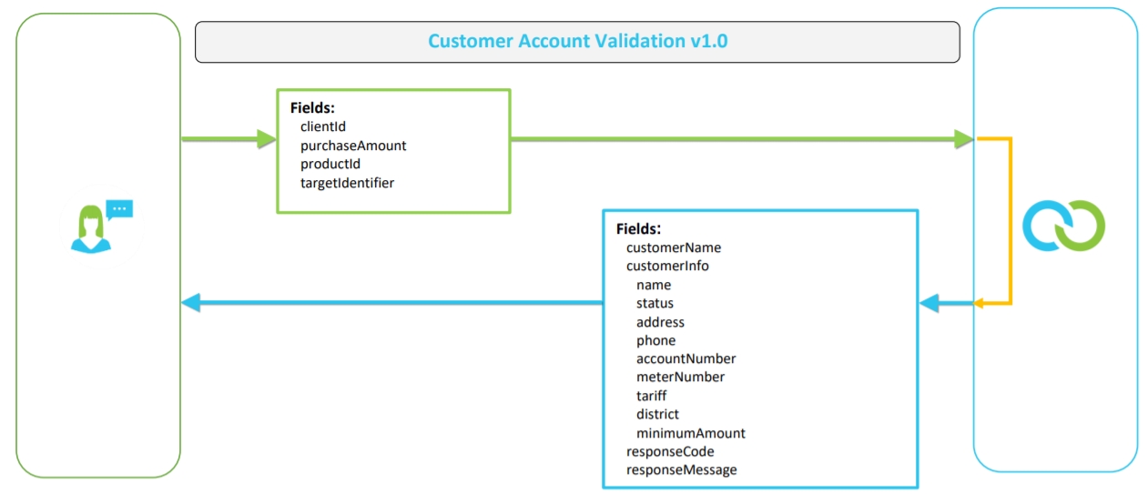 Clients can use the Customer Account Validation API to validate an end-user's bill payment account number (e.g., DSTV Smart Card or electricity meter number) before submitting the bill payment purchase request to the vendor.