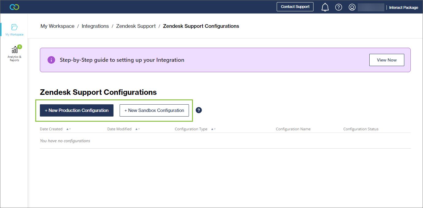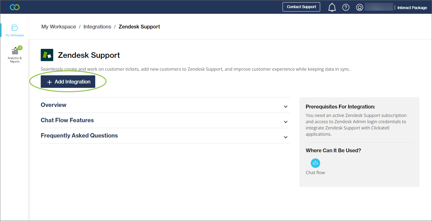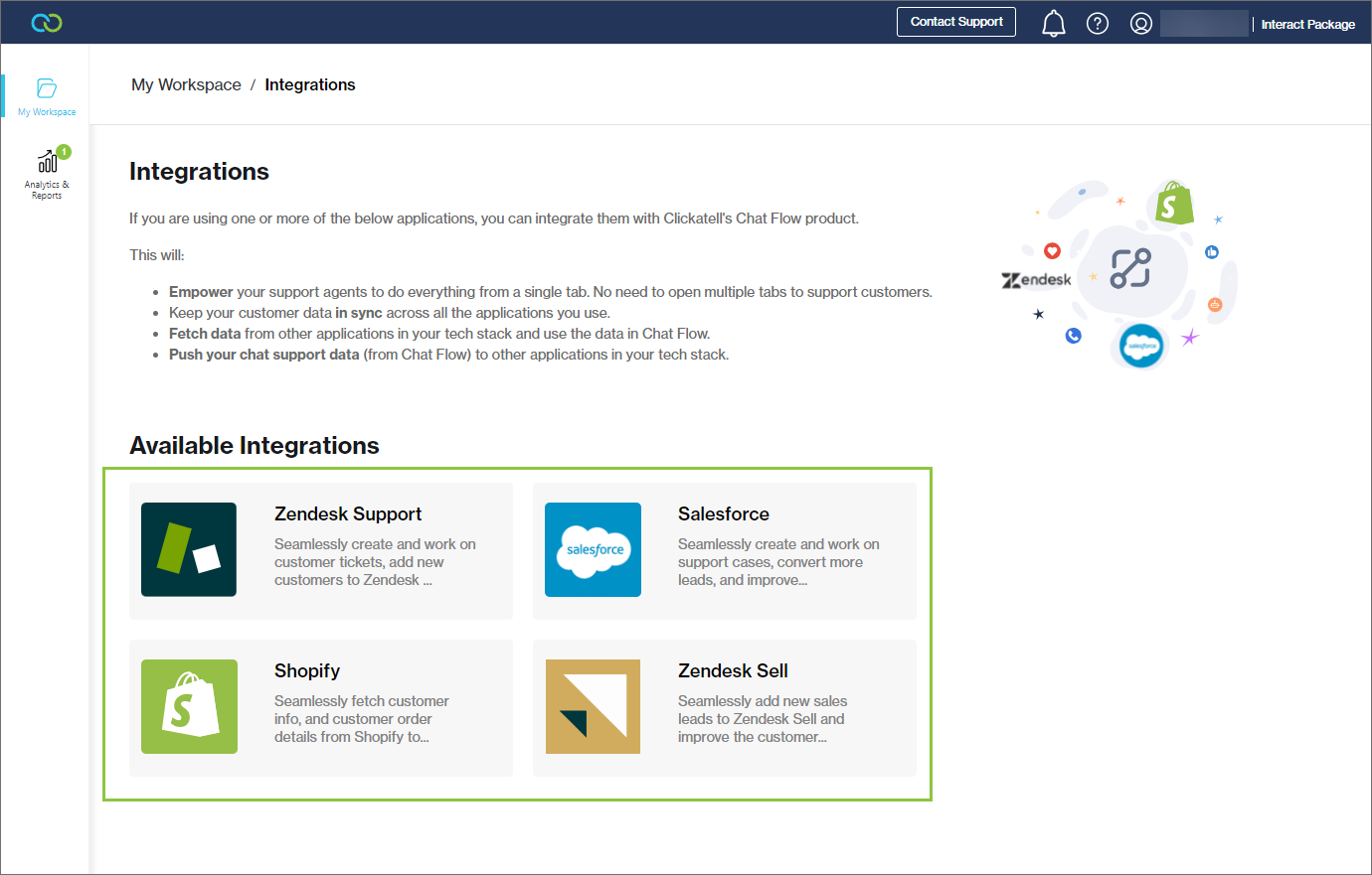In the Clickatell Portal, go to My Workspace -> Integrations.