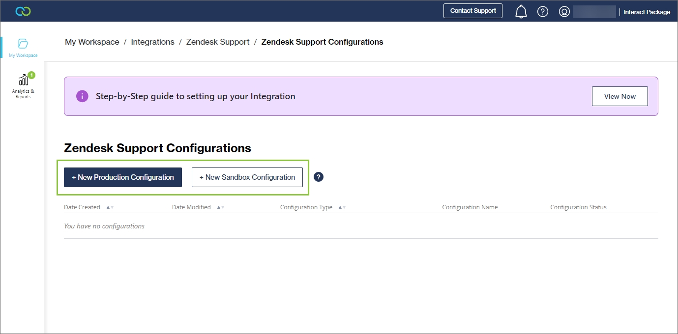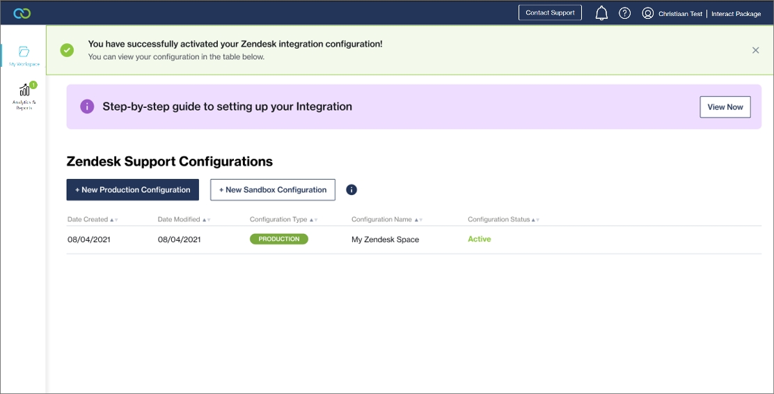 Add a new production configuration or sandbox configuration (for testing).