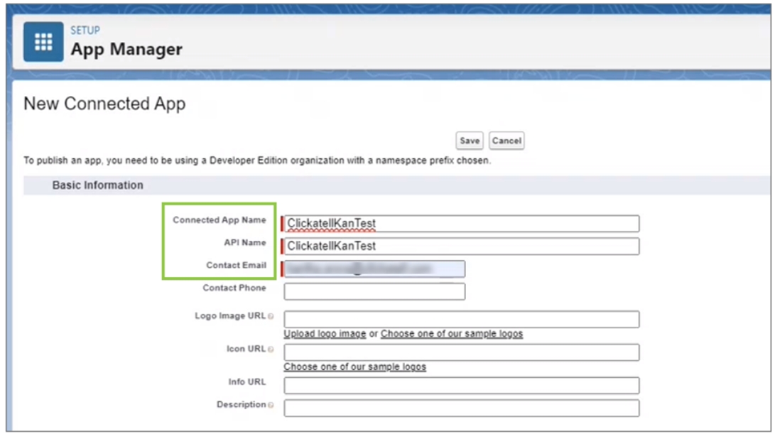 Connected App Name: Give any name to your new connected app in Salesforce.