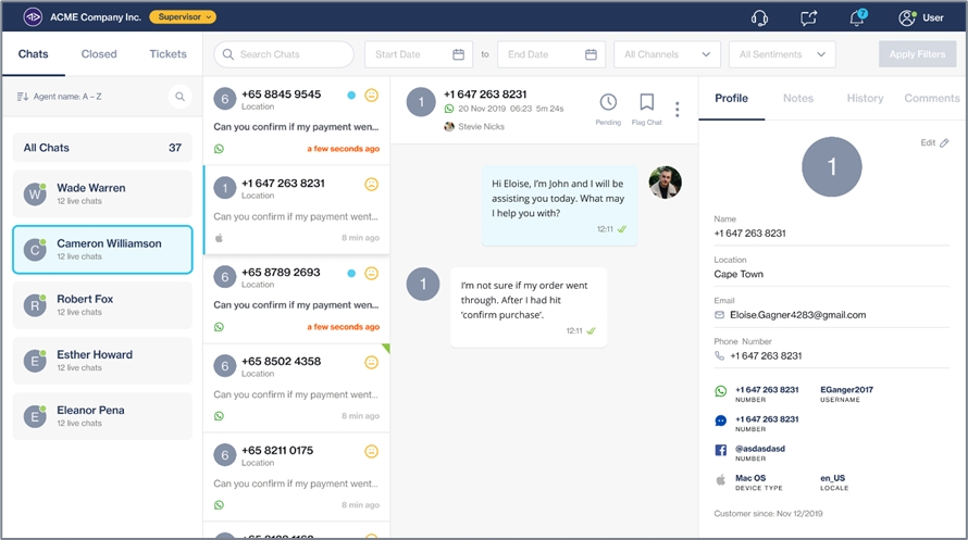 Chat Desk is Clickatell’s easy-to-use customer support software that enables real-time, live agent communication with customers on multiple messaging channels via a single web interface.