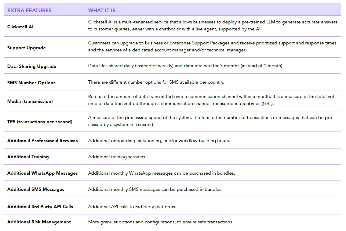 You can upgrade the standard package configurations to suit your needs better. Add generative AI capabilities, enterprise support SLAs, workflow building, data services, and more. Each upgrade increases the total package fee.
