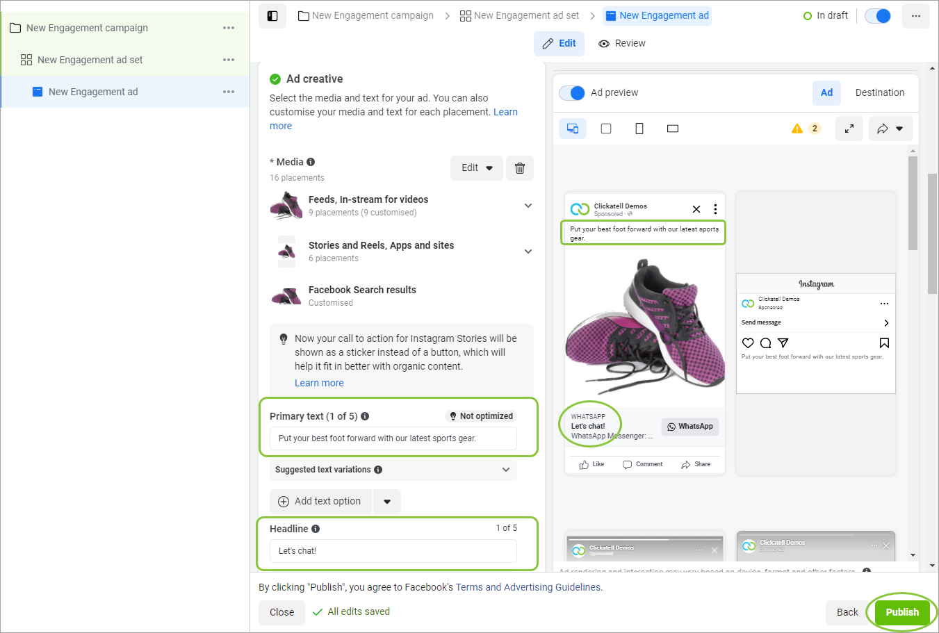 Add the headline - this is the call-to-action message that will appear next to the WhatsApp button in your ad.