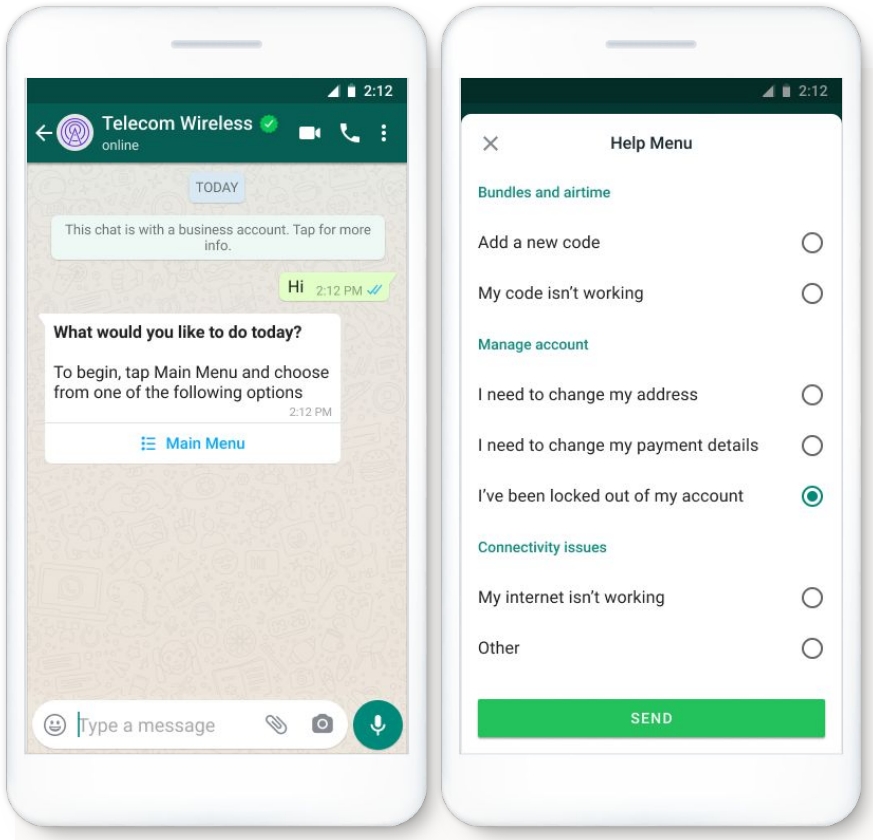 Interactive messages give your customers a simpler and more consistent way to find and select what they want from your business on WhatsApp.