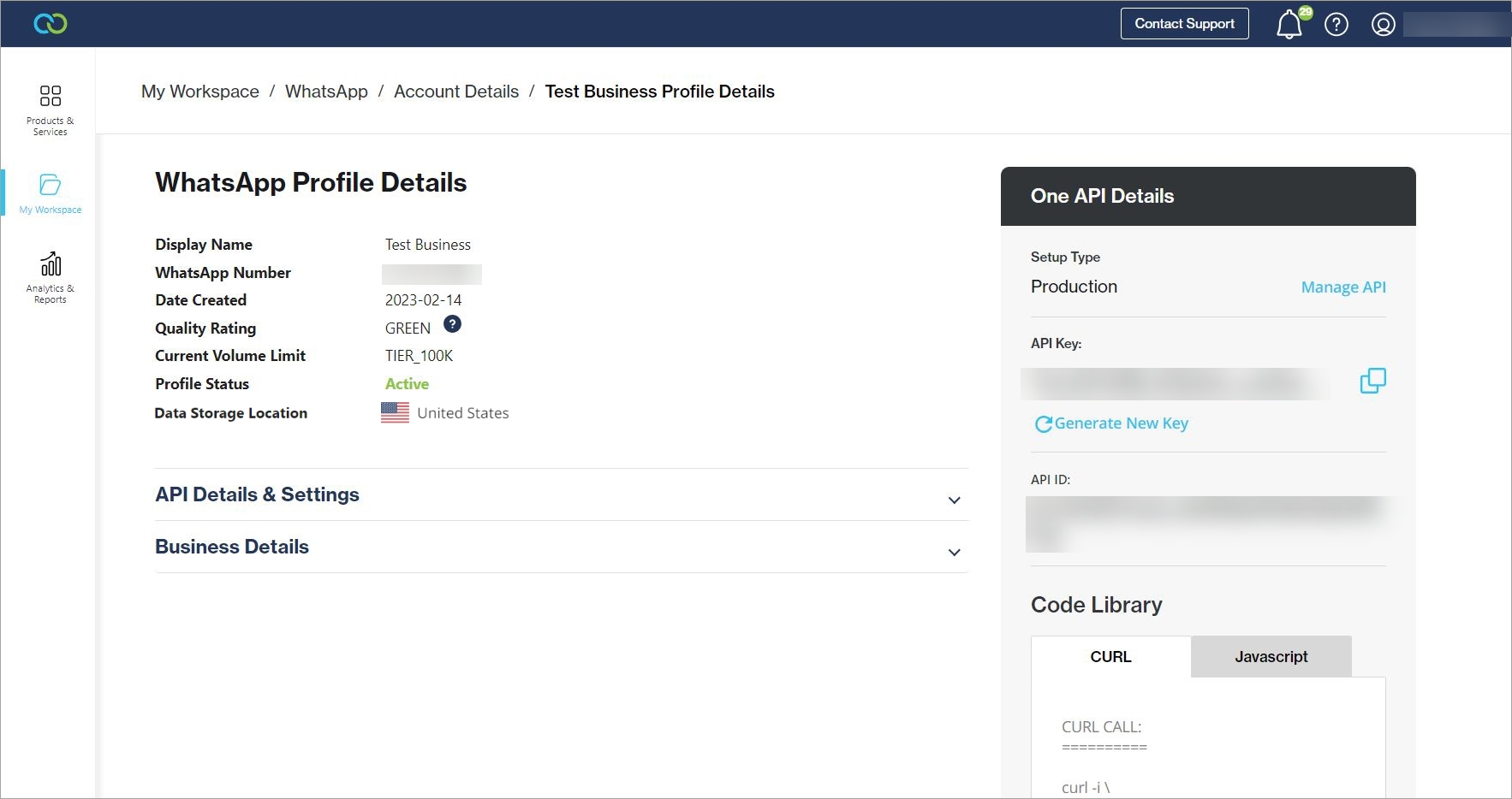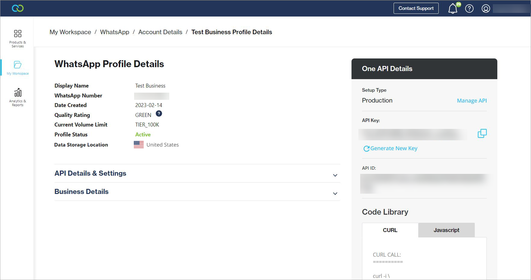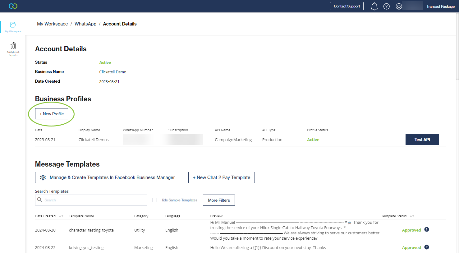 Navigate to My Workspace -> WhatsApp and select the WhatsApp account from the table.