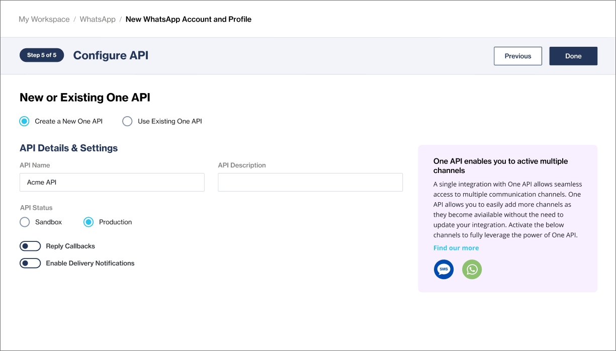 Click + New WhatsApp Account & Profile.