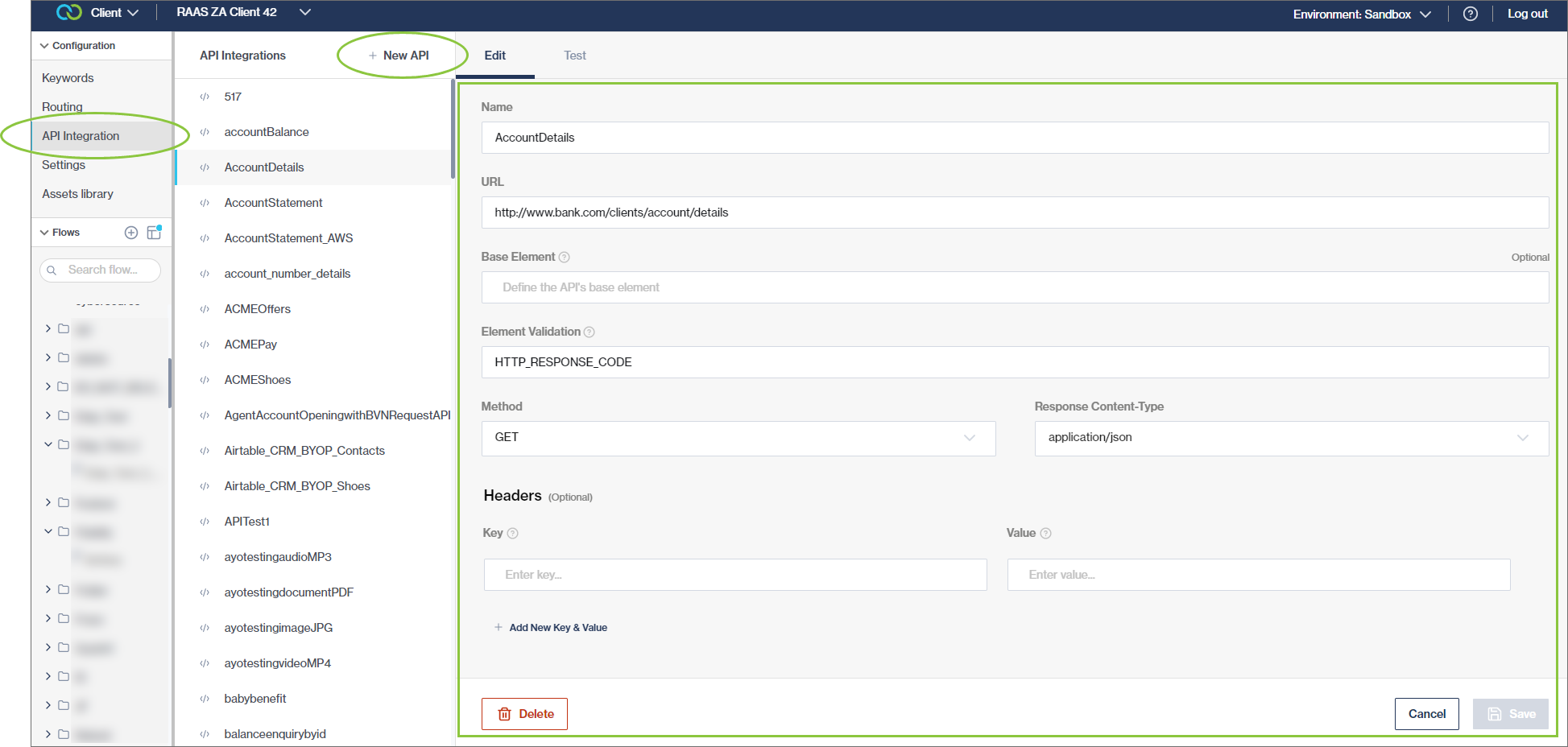 Adding headers on the API Integrations screen, allows the flow-builder to configure the API keys only once on the API level instead of updating them on each HTTP Call node, especially time-saving when testing.