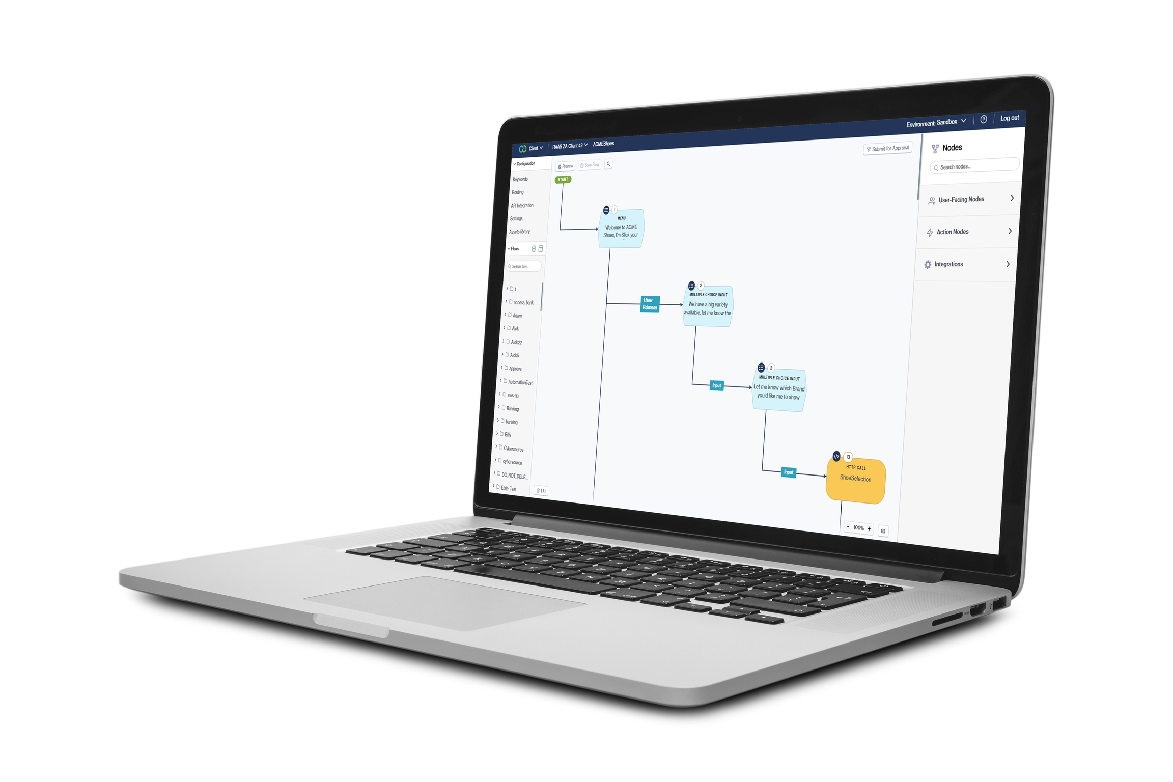 • Creating and modifying conversational workflows via a simple drag-and-drop interface.