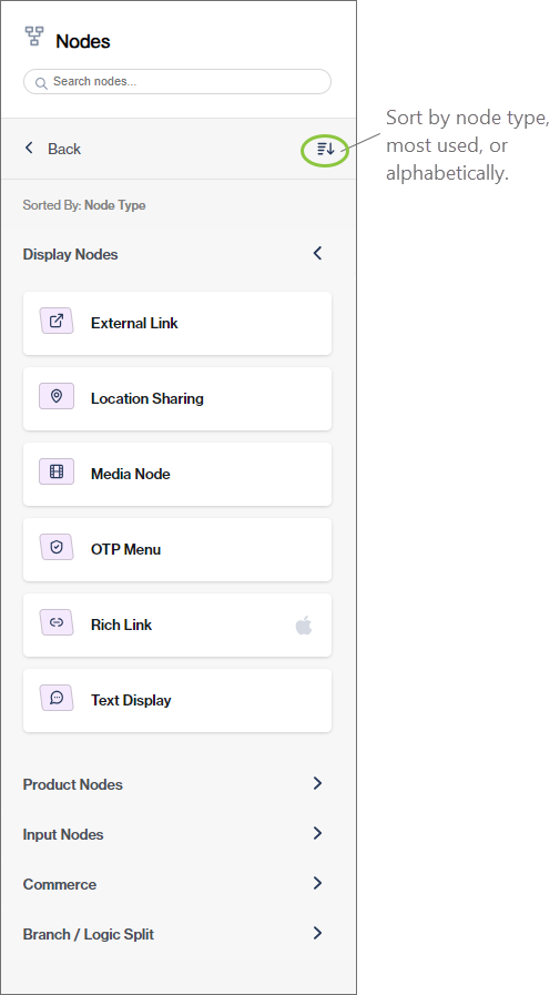 The different types of user-facing nodes are described in the USER-FACING NODES section of this user guide.