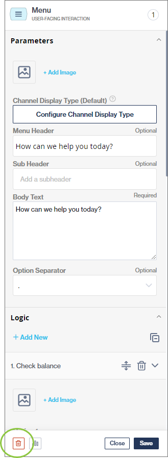 Click the recycle bin to bring up a panel displaying all the parent nodes that were deleted from the selected flow as well as the children nodes connected to them.