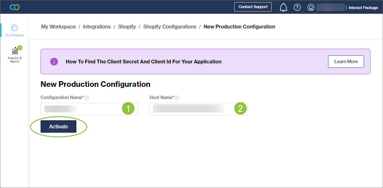 When you add a new Shopify configuration, there are two required fields you have to add in the Clickatell Portal: