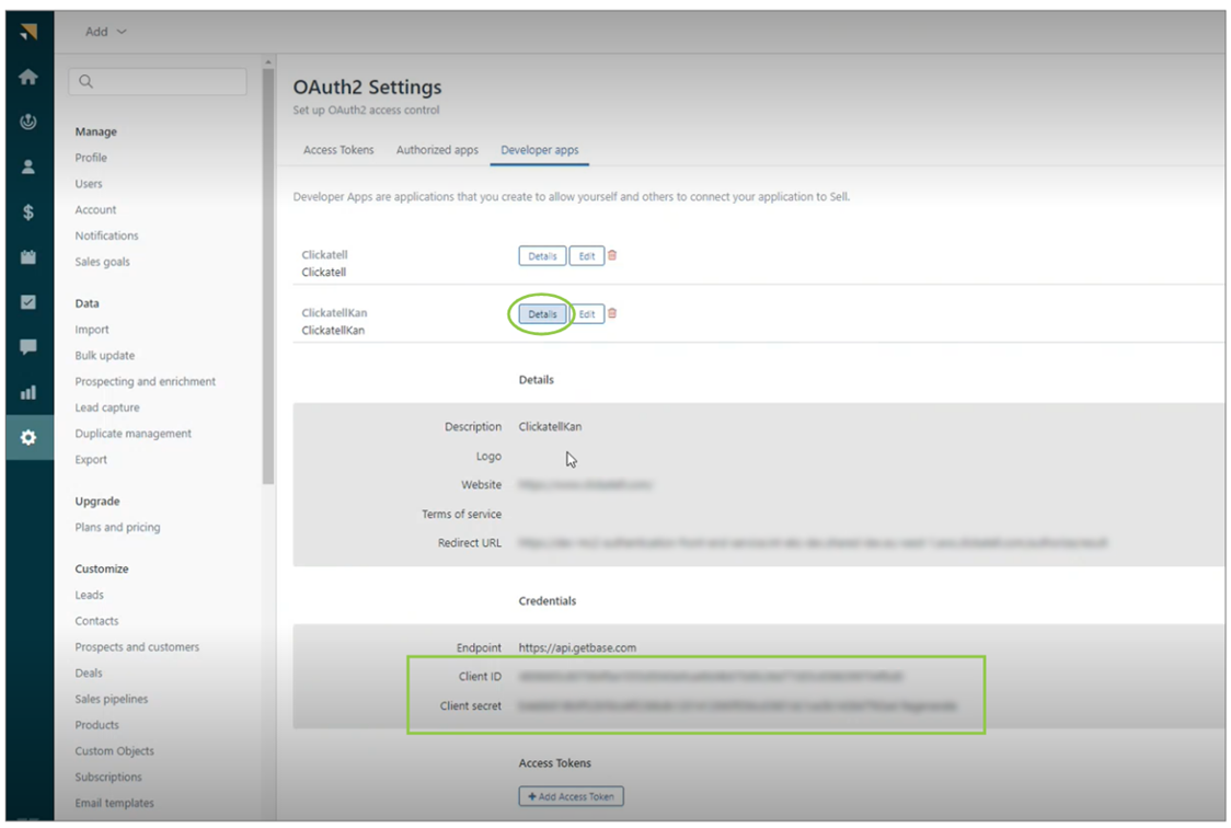 To integrate with Zendesk Sell, you need to copy over the Client ID and Client Secret from Zendesk Sell into the Clickatell Portal. These are unique and get generated when you add a new Connected App in Zendesk Sell.
