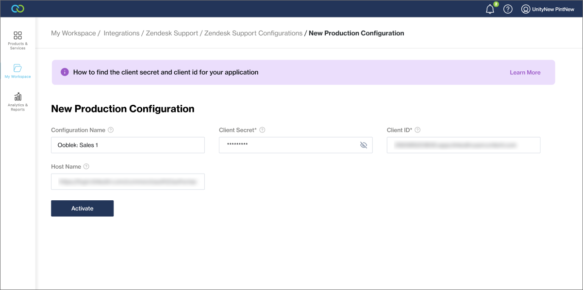 If you haven't added an OAuth Client in Zendesk Support for this integration yet, please refer to this page first.